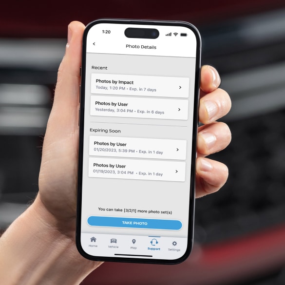 Используйте приложение Mynissan, чтобы запросить фотографии и проверьте внешнюю внешнюю часть вашего автомобиля, если это так. Проверьте фотографии, сделанные в автомобильной камере, когда ваш автомобиль запускается при инциденте с парковкой или для проверки предметов, оставленных в автомобиле, если оснащен внутренней камерой. Удаленные срабатываемые фотографии доступны в приложении в течение 7 дней. [[1189]] [[5643]]