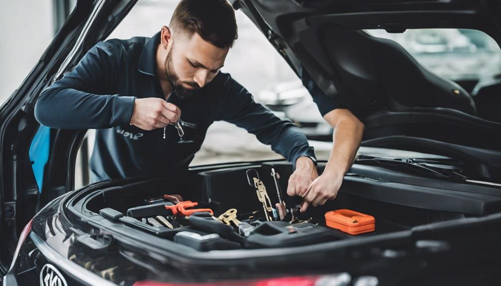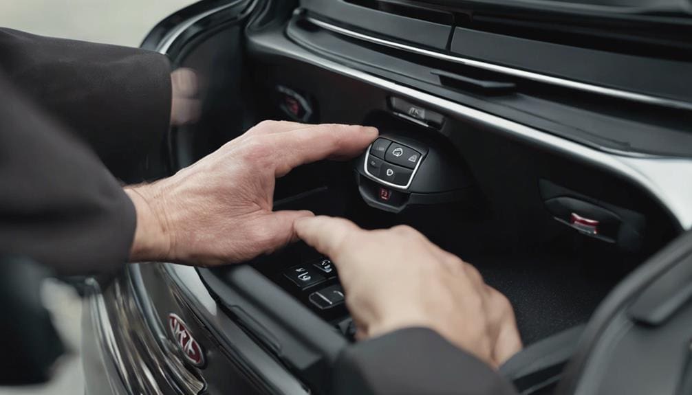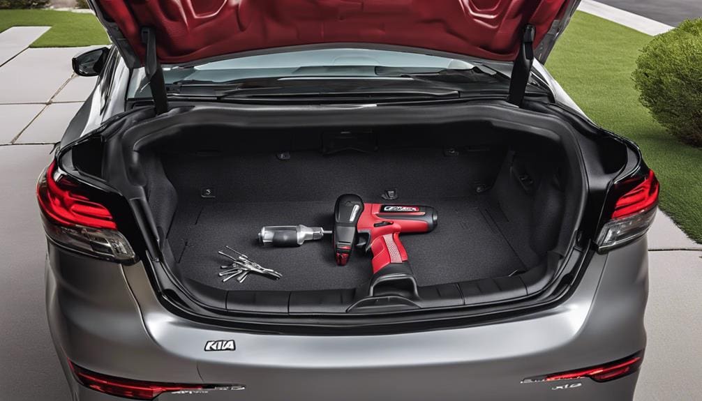 Чтобы открыть свой багажник Kia Optima без ключа, начните с выпуска аварийного туловища внутри туловища; Потяните рычаг, чтобы открыть его. Вы также можете сложить задние сиденья, используя механизм выпуска сиденья, обеспечивая доступ к багажнику. Другим вариантом является использование ручного слота клавиши возле защелки для багажника, если у вас есть физический ключ. Для профессиональной помощи, слесарь может гарантировать безопасный доступ. В качестве альтернативы, вы можете питать коробку предохранителей, используя кабели перемычки, подключенные к красному проволоку на контакте 69. Для получения более подробных методов и дополнительных наконечников изучайте дальнейшее изучение. Согласно ключевым таблице, используя рычаг выпуска аварийного багажника, расположенный внутри багажника, чтобы получить доступ. Сложите задние сиденья, используя механизм выпуска, чтобы получить доступ к туловище изнутри автомобиля. Вставьте физический ключ в слот ручного ключа возле защелки для багажника, чтобы открыть багажник. Свяжитесь с профессиональным слесарями для безопасного и эффективного доступа к сундуку без ключа. Подключите кабели перемычки к красному проволоку на штифте 69 в коробке предохранителей для временного доступа к туловище. Выпуск экстренного багажника В случае чрезвычайной ситуации механизм выброса аварийного ствола в вашем Kia Optima, обычно расположенном рядом с защелкой туловища или в подкладке ствола, позволяет открывать багажник изнутри. Эта функция имеет решающее значение для предотвращения случайного захвата и защиты безопасности всех пассажиров. Очень важно ознакомить себя с точным местоположением и эксплуатацией выпуска аварийного туловища. Чтобы найти выпуск аварийного туловища, посмотрите рядом с привязкой к багажнику или проверьте в подкладке багажника. Вы найдете рычаг или провод, предназначенный для легкодоступного. После того, как вы определили его местоположение, периодически проверяйте механизм, чтобы убедиться, что он функционирует правильно. Проведите рычаг или проволоку, чтобы открыть ствол изнутри, предоставив пассажирам возможность сбежать в ловушке. Доступ к заднему сиденью, доступ к стволу Kia Optima без ключа, включает в себя использование механизма высвобождения заднего сиденья для простого решения. Во-первых, найдите выпуск багажника внутри вашего автомобиля. Обычно это встречается рядом с сиденьем водителя или в районе кабины. Получение этого выпуска имеет решающее значение, прежде чем попытаться сделать какие-либо дальнейшие шаги. Затем, чтобы использовать доступ на заднее сиденье, определите механизм для складывания задних сидений. В Kia Optima складные сиденья обеспечивают альтернативный путь для доступа к туловище без ключа. Вовлекайте рычаги выпуска сиденья, обычно расположенные в верхней части спинки. Протолкните сиденья вперед, чтобы создать отверстие в область багажника. В случае чрезвычайной ситуации некоторые модели Optima оснащены аварийным механизмом высвобождения сиденья. Эта функция повышает безопасность и удобство доступа к туловище, когда ключ недоступен. Кроме того, ознакомьтесь с проводной выбросом аварийного багажника, важной функцией безопасности, которая может помочь в таких ситуациях. Используя ручной слот клавиш, вы найдете ручной слот с ключом возле защел