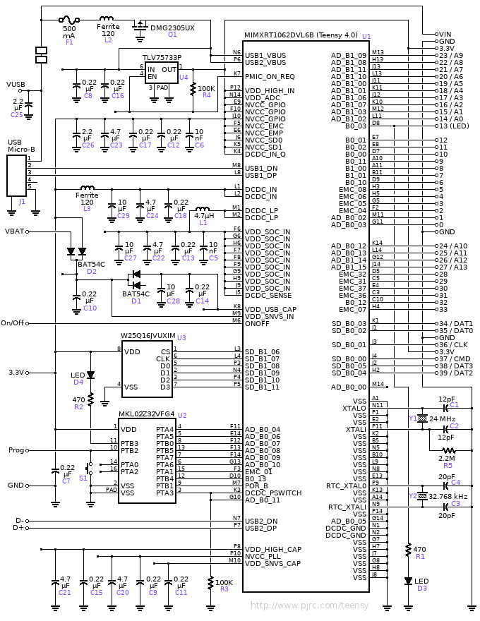 При работе на уровне 600 МГц Teensy 4.0 потребляет примерно 100 мА. Teensy 4.0 обеспечивает поддержку динамического масштабирования тактовой частоты. В отличие от традиционных микроконтроллеров, где измение тактовой скорости вызывает неправильные скорости передачи других проблем, аппаратное обеспечение Teensy 4.0 и поддержка программного обеспечения Teensyduino для функций Arduino Timing предназначена для динамического измения скорости. Стоимость серийного бодского, показателя дискретизации аудио и функции Arduino, таких как Delay () и Millis (), и расширения Teensyduino, такие как интервалтимер и elapsedmillis, продолжают работать должным образом, в то время как процессор изменяет скорость. Teensy 4.0 также предоставляет функцию отключения питания. Подключив кнопку к штифте к штифту включения/выключения, источник питания 3.3V может быть полностью отключен, удерживая кнопку в течение 5 секунд, и включил снова нажатием кнопки. Если ячейка монеты подключена к VBAT, RTC Teensy 4.0 также продолжает отслеживать дату и время, пока питание выключено. Teensy 4.0 также может быть разбросан, намного выше 600 МГц!