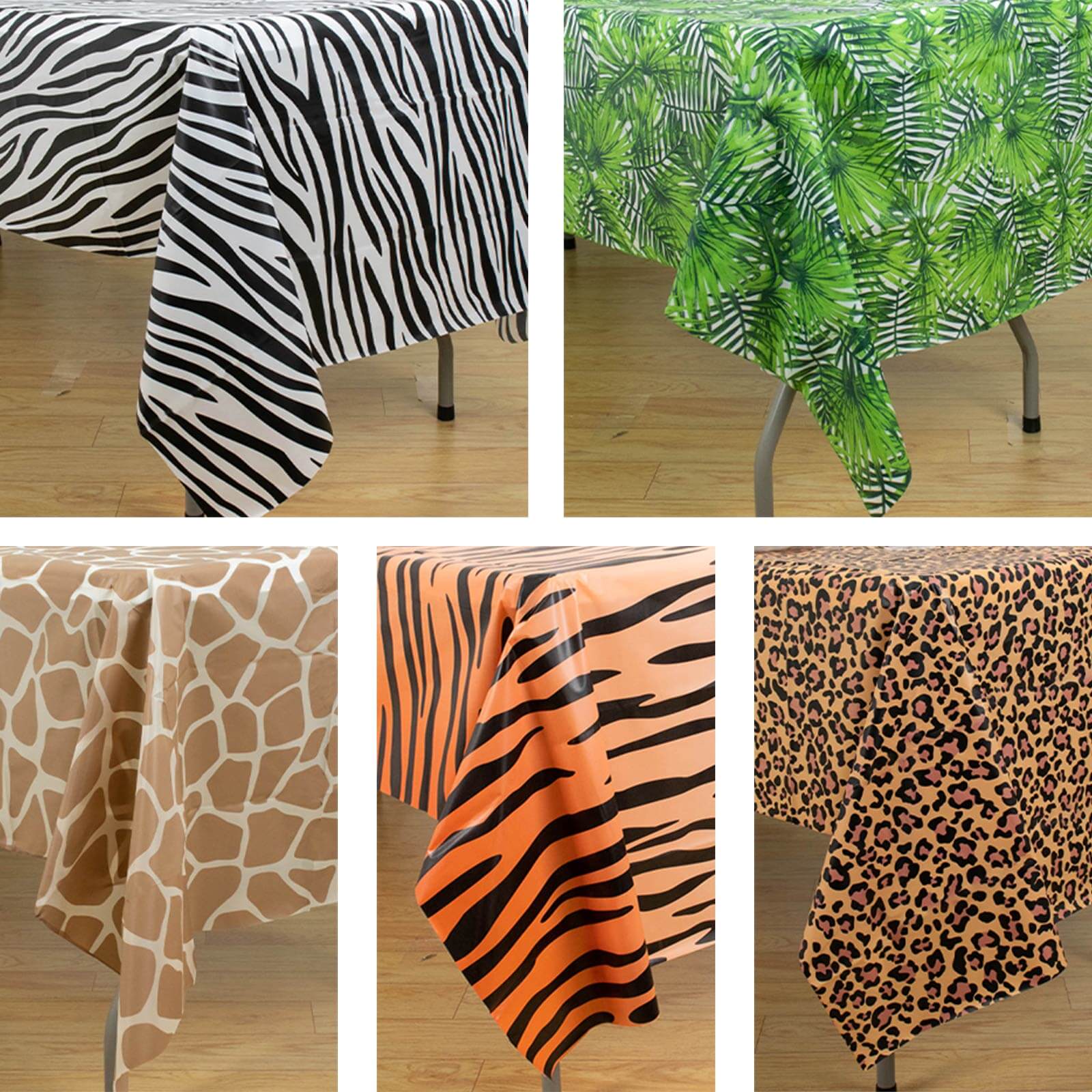 Добавьте немного волнения и приключений ваш следующий случай на животном, с нашим набором из 5 атмосферных сафари-зоопарка водонепроницаемые пластиковые скатерти . Эти столешницы бывают разных ярких дизайнов, включая гепарда, жирафа, зебру, тигр и тропический лист. Каждая скатерть измеряет 54 «x108», обеспечивая достаточное покрытие для ваших партийных таблиц. Планируете ли вы вечеринку по случаю дня рождения, детский душ или любое другое специальное празднование, эти скатерти являются идеальным дополнением для создания незабываемого события.